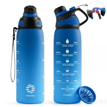 Leakproof 34oz Sports Water Bottle with Magnetic Lid and Carry Strap